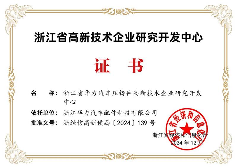 浙江省高新技術(shù)企業(yè)研究開(kāi)發(fā)中心證書(shū)